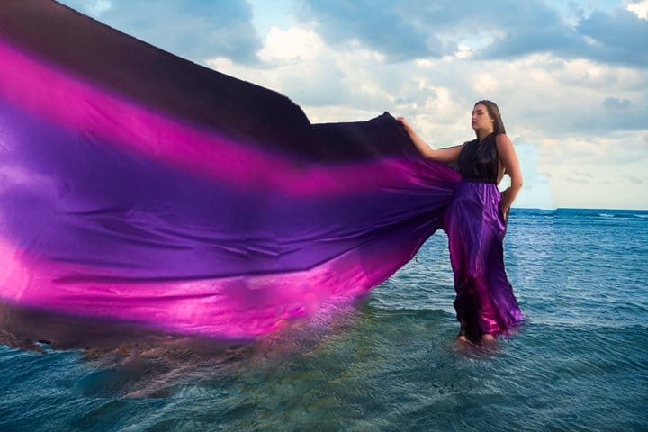 A NEW VISION for the Flying Dress in the Caribbean! Illusion of standing of top of the Ocean